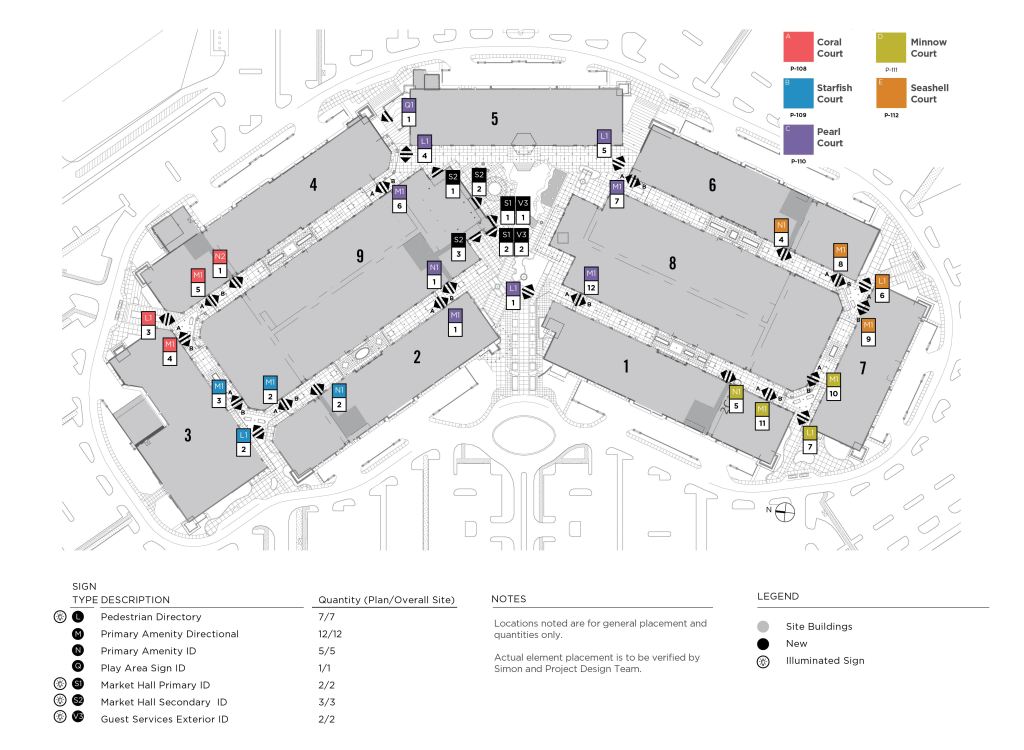 Working with FRCH Worldwide and their outside architectural firm, I developed a signage package that helped reinforce the new personality of the mall architecture.