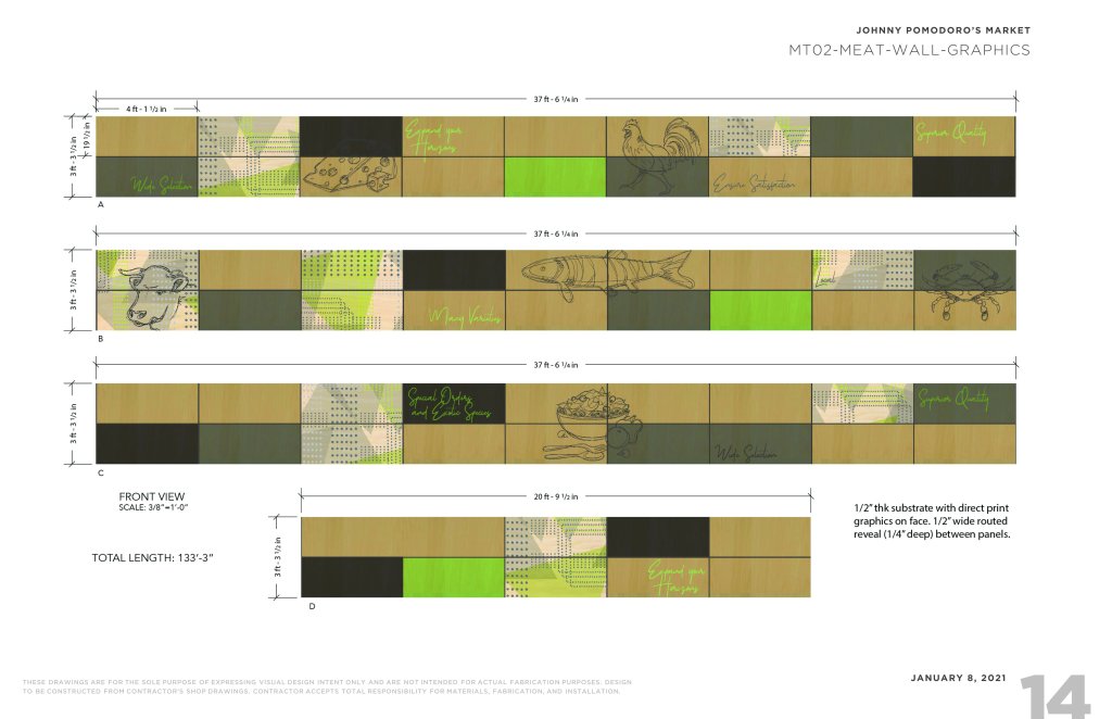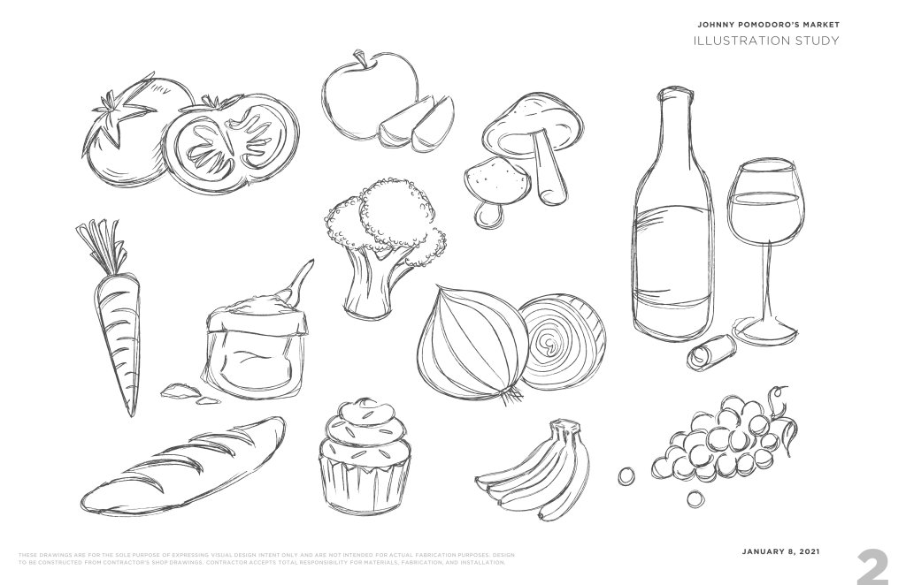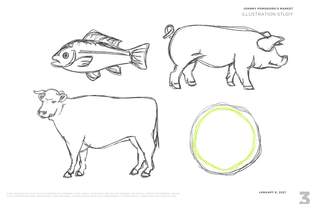 Working with the team at StudioH2G, I created a graphics package for the newly renovated local market. I developed everything from the sketch art to the sign designs. The goal was a modern take on a rural farm.
